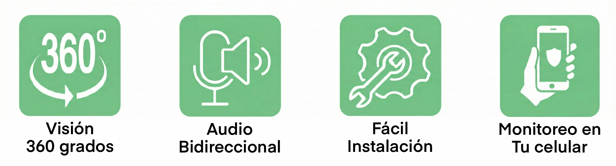 • Control total al alcance de tu mano: Monitorea todo en 2K Ultra HD con visión de 360° y nocturna. Sin puntos ciegos y con conexión 5G, tendrás seguridad absoluta desde tu celular.